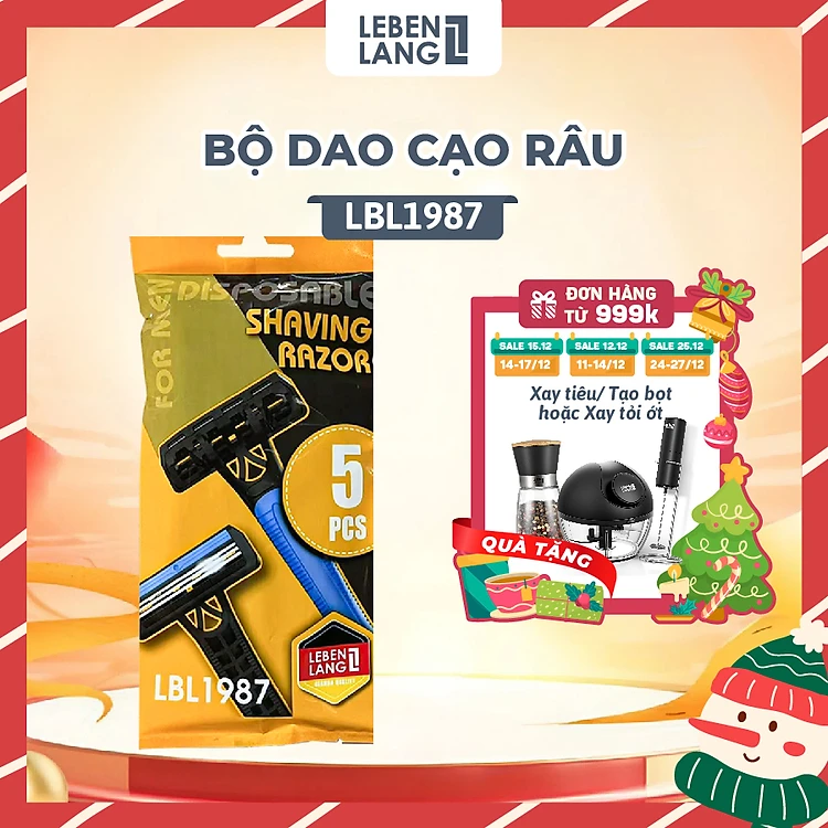 Dao cạo râu 3 lưỡi Lebenlang LBL1987, tay cầm chống trơn trượt, lưỡi dao chứa Gel lô hội và vitamin E, 5 cái - hàng chính hãng