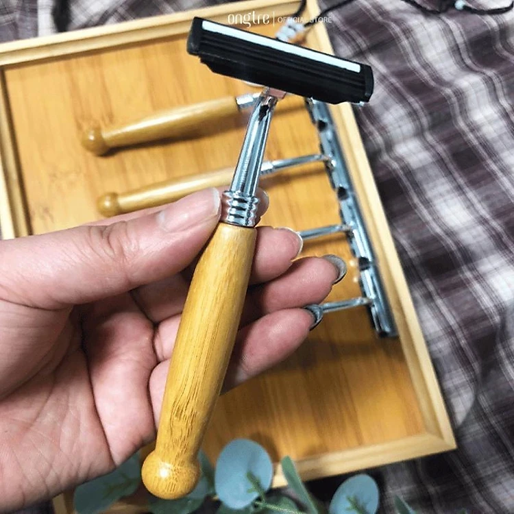 Dao cạo râu cán tay cầm bằng tre cao cấp tự nhiên an toàn ONGTRE dùng từ 1-3 tháng