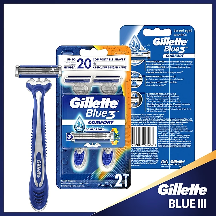 Dao cạo râu Gillette Blue 3 Comfort 2S (Bộ 2 cây lưỡi dao cạo râu 3 lưỡi Gillette Blue 3)