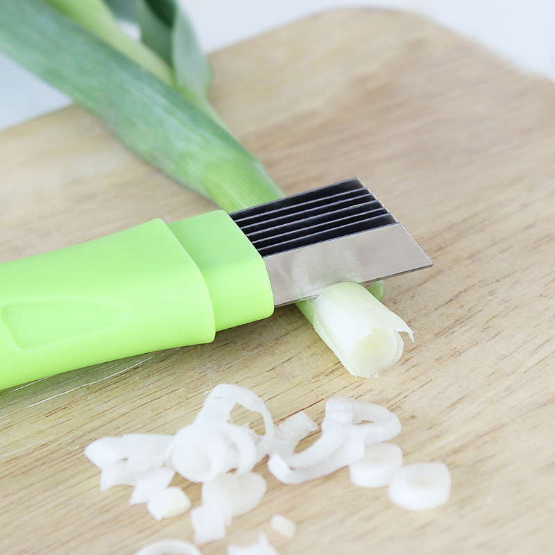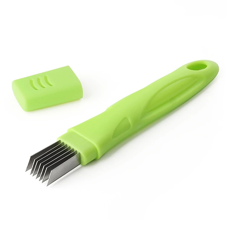 Dao cắt lát hành tây, thái sợi và cắt nhỏ rau củ quả được thiết kế tay cầm và nắp bằng nhựa APS, phần lưỡi dao bằng inox sắc bén giúp bạn thái sợi rau, củ, quả nhanh chóng và gọn lẹ, tiết kiệm thời gian của bạn.