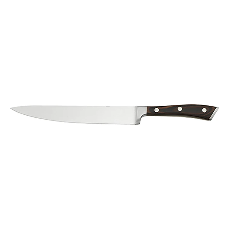 - Dao được làm bằng kỹ thuật rèn từ một khối thép, lưỡi dao và chuôi dao liền trong một mảnh, vừa đẹp, bền lại tiện dụng. Ngoài ra, phần cán thiết kế vừa tay cầm, được bọc bởi 1 lớp gỗ mỏng, màu nâu đen, giúp cho phần cán trở nên sang trọng và chắc chắc hơn, tạo cho bạn hứng thú nấu ăn mỗi ngày.