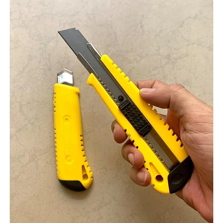 - Dao Rọc Giấy thiết kế lưỡi dao bằng hợp kim thép sắc bén, nhỏ gọn nhưng rất cứng cáp cho bạn cắt, rọc giấy thật dễ dàng, nhanh chóng theo ý thích. Dao có vỏ bọc bằng kim loại đảm bảo an toàn cho đôi tay của bạn. Bạn chỉ cần đẩy khóa chốt lên để cố định độ dài lưỡi dao lúc cắt và kéo xuống để cất dọn, thật dễ dàng khi sử dụng.