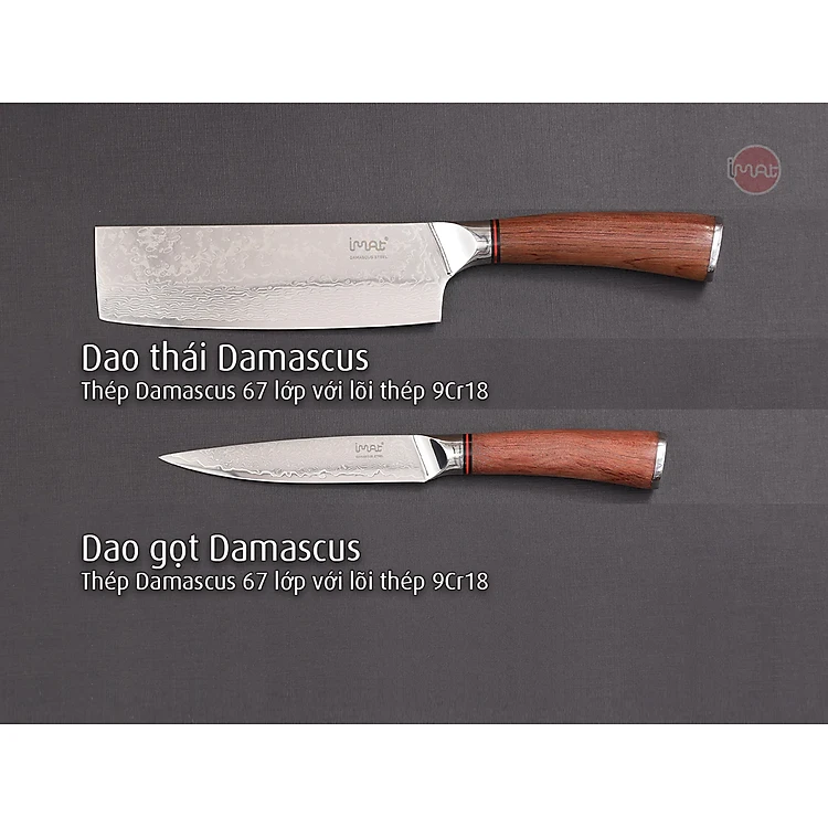 Dao nhà bếp Damascus iMat, lưỡi bằng thép không gỉ 9Cr18, cán gỗ cẩm lai tự nhiên
