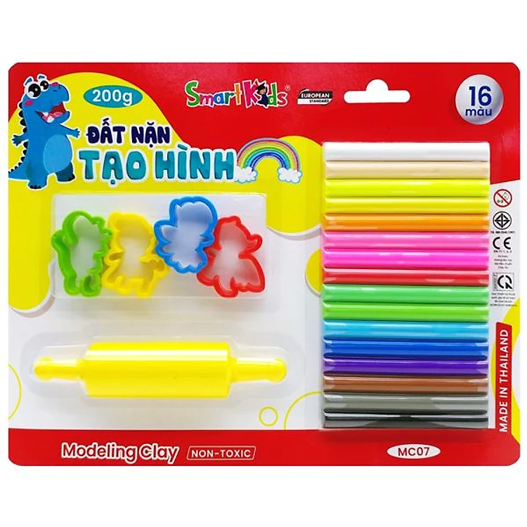 Đất Nặn Tạo Hình 16 Màu Vỉ Nhựa 200gr + 1 Con Lăn + 4 Khuôn Ngẫu Nhiên - Smart Kids MC07