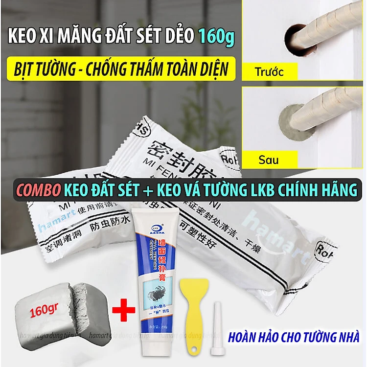 Keo Đất Sét Xi Măng Dẻo Bịt Tường 160gr Vá Trám Lỗ Điều Hoà Chống Thấm Cách Nhiệt Sửa Chữa Nhà Cửa Hamart