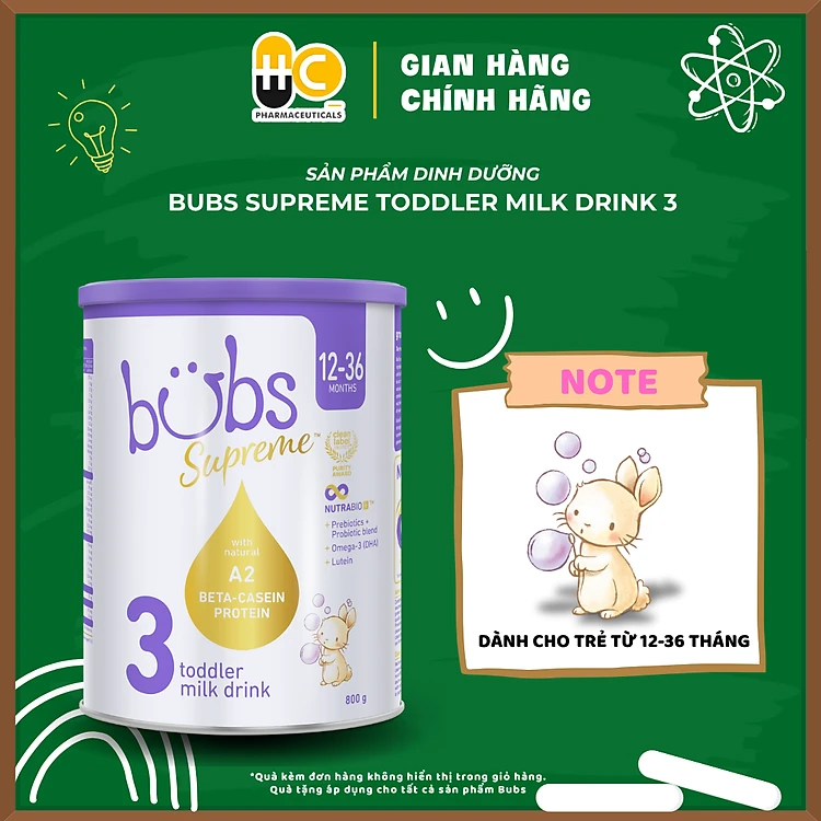 Sữa dinh dưỡng Bubs Supreme Toddler Milk Drink 3 dành cho trẻ từ 12-36 tháng tuổi