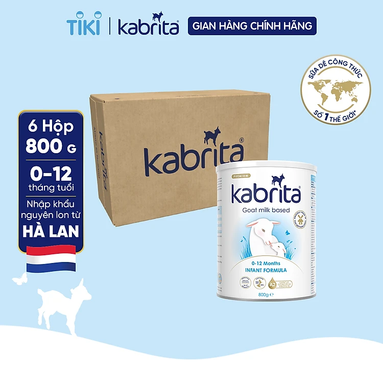 [Phiên bản mới] Thùng 6 lon Sữa dê Kabrita số 1 cho trẻ từ 0 -12 tháng - Lon 800g