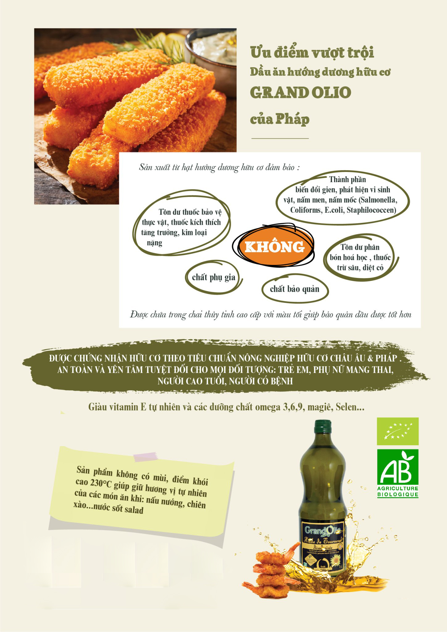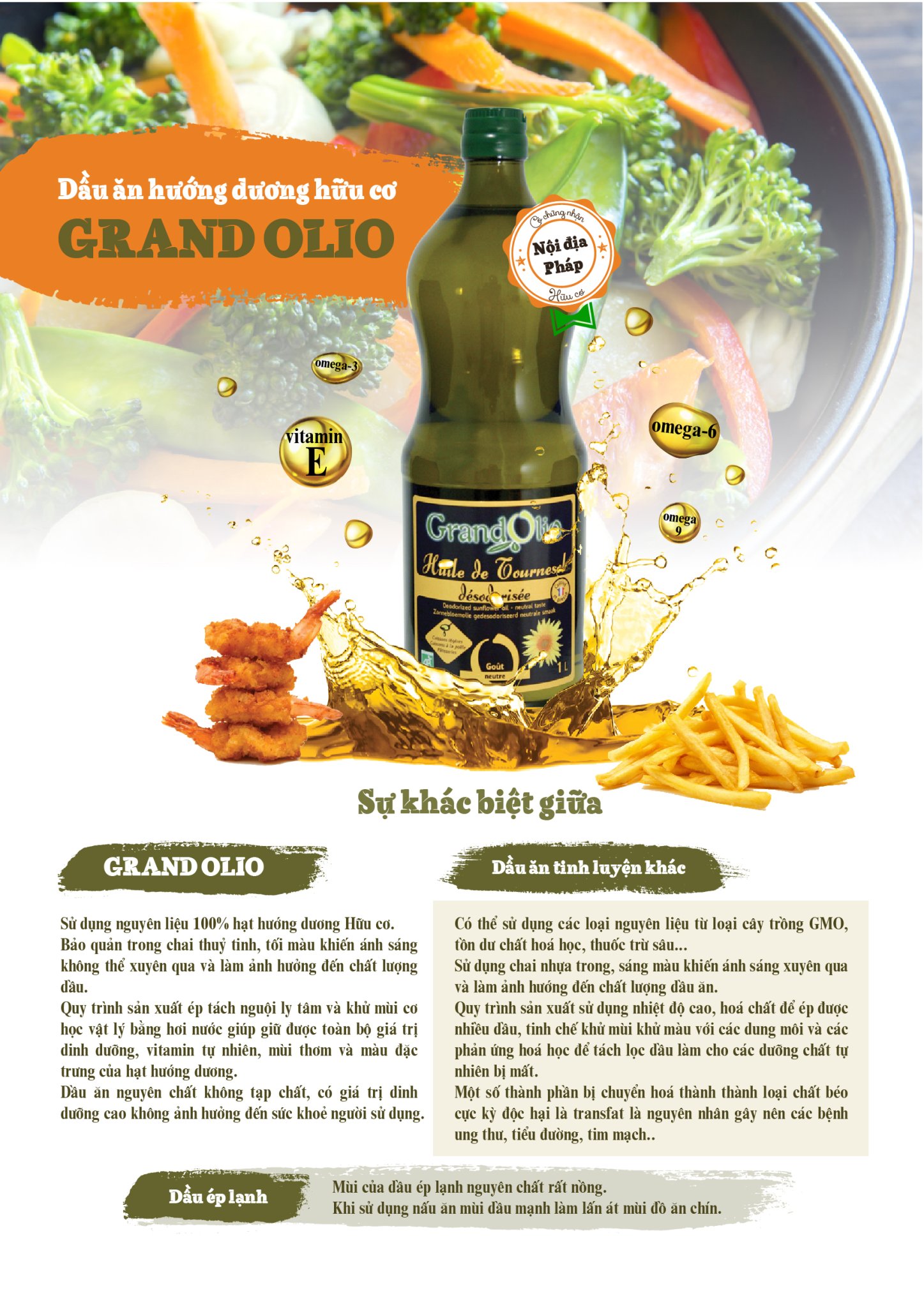 Ưu điểm vượt trội của dầu ăn hướng dương hữu cơ GRAND OLIO của Pháp