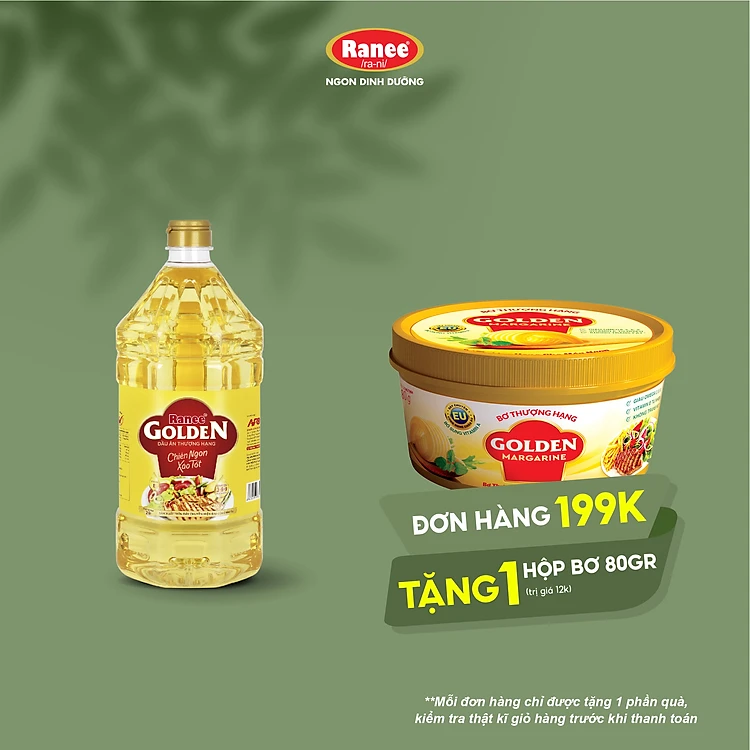 {Đơn 199k tặng hộp bơ 80g} Dầu ăn thượng hạng Ranee Golden 2 lít