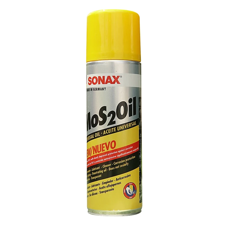 - Dầu Bảo Quản Chống Gỉ Và Ăn Mòn Sonax Mos2oil (300ml) là dầu đa dụng, dùng để làm tan rỉ sét, tăng cường tiếp xúc, làm hết tiếng kêu, tăng bôi trơn các phần chuyển động, làm lỏng ốc rỉ sét, đai bu lông, tăng cường dẫn điện và đánh lửa, bảo vệ phần sắt tiếp xúc với bên ngoài không bị ăn mòn.