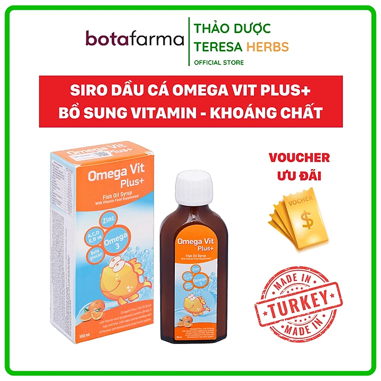 Dầu cá Siro Omega Vit Plus+ tăng cường đề kháng, tốt cho não bộ và mắt chai 100ml