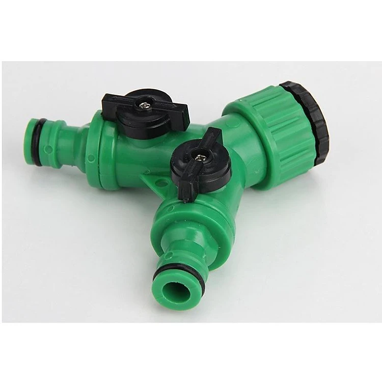 Đầu chia vòi nước 2 cổng có van khóa bằng đồng nhựa - van nước máy giặt -KC2ducNHUA