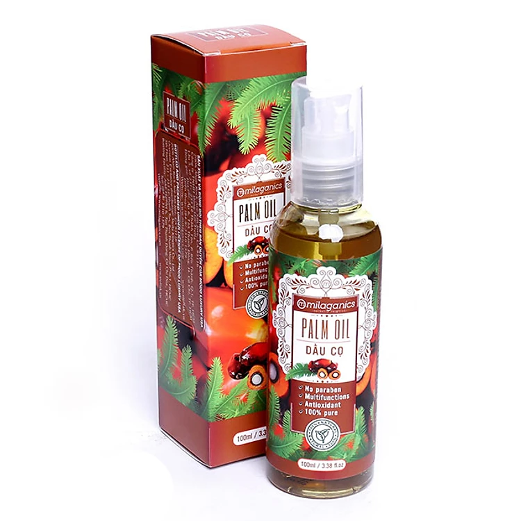 Dầu Cọ Milaganics 100ml có chứa nhiều thành phần dưỡng chất cùng Vitamin rất tốt cho làn da và mái tóc của bạn, giúp dưỡng ẩm, làm trắng da, mờ sẹo, phục hồi tóc hư tổn. Đây là liệu pháp chăm sóc sắc đẹp từ thiên nhiên an toàn và lành tính bởi thành phần chiết xuất 100% từ trái cọ đỏ.