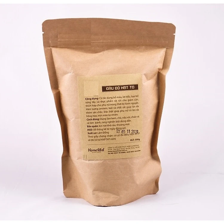 Đậu đỏ Homefood được thu hoạch từ giống cây trồng theo phương pháp an toàn, không sử dụng hóa chất hay phân bón hóa học, hạt đậu sau khi phơi nắng tự nhiên thì được đóng gói trong bao bì cẩn thận nhằm bảo quản được lâu nhất.