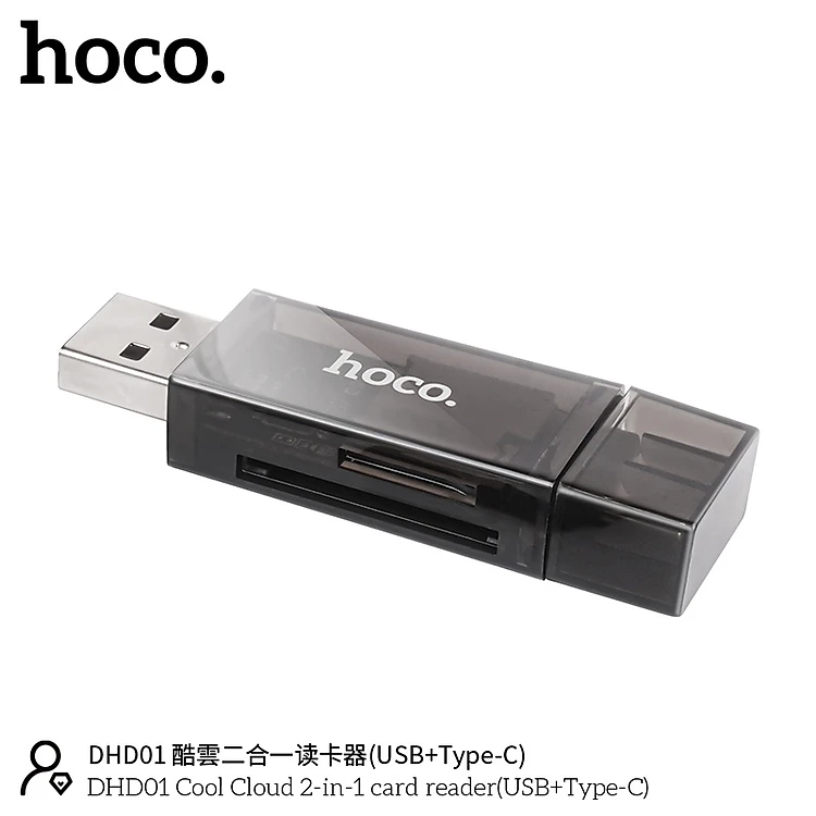 Đầu đọc thẻ nhớ đa năng TF SD 2 trong 1 tiện lợi 1 đầu USB, 1 đầu typec 480Mbps Hỗ trợ dung lượng 2TB - hàng chính hãng