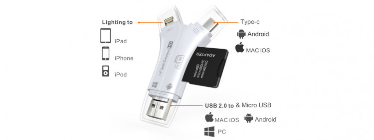 - Với những người chuyên sử dụng các thiết bị của hãng Apple, đầu đọc thẻ đa chức năng i-FlashDevice HD cũng có cổng kết nối tương đương để hỗ trợ cho bạn trong việc kết nối và truy xuất dữ liệu.