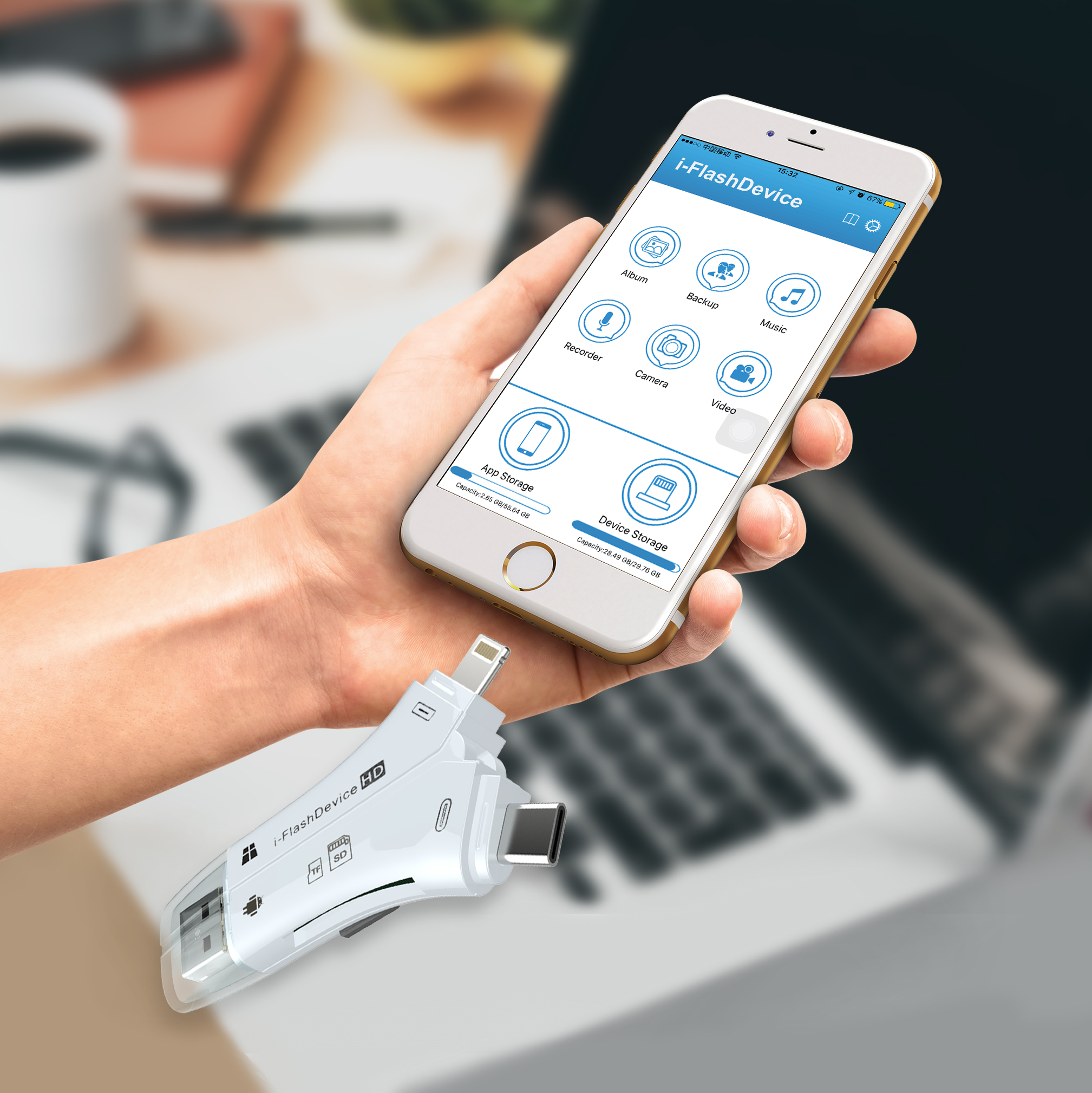 iPhone không được trang bị khả năng mở rộng bộ nhớ lưu trữ bằng thẻ nhớ như trên những smartphone Android, Windows Phone thường thấy. Chính vì vậy USB tích hợp cổng Lightning là giải pháp đơn giản gọn nhẹ nhất mà bạn có thể nghĩ tới để lưu trữ hình ảnh,file tài liệ Không Cần có mạng wifi đọc tài liệu trực tiếp tài liệu trong thẻ nhớ qua thiết bị