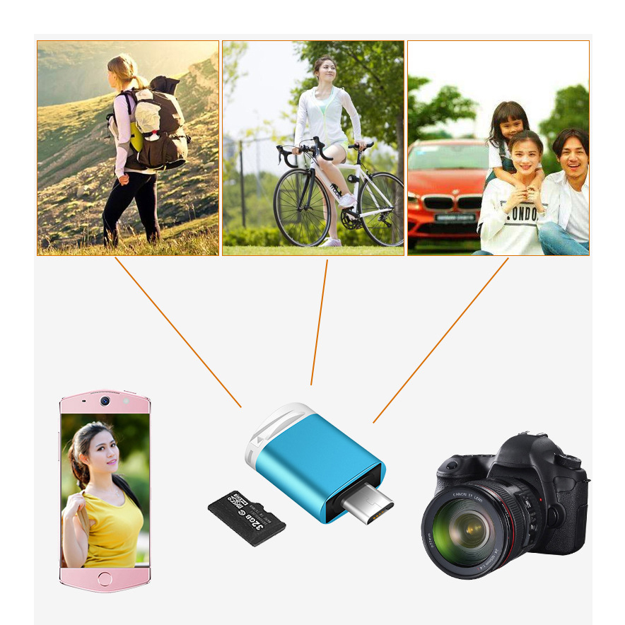 Đầu đọc thẻ nhớ micro SD dành cho điện thoại sẽ đơn giản hóa các thao tác đó. Bạn chỉ cần cắm thẻ nhớ vào đầu đọc này và cắm vào điện thoại để copy dữ liệu. Kích thước nhỏ gọn, trọng lượng chưa đến 5gram. Khả năng kết nối nhiều thiết bị chỉ cần máy có cổng kết nối micro USB.