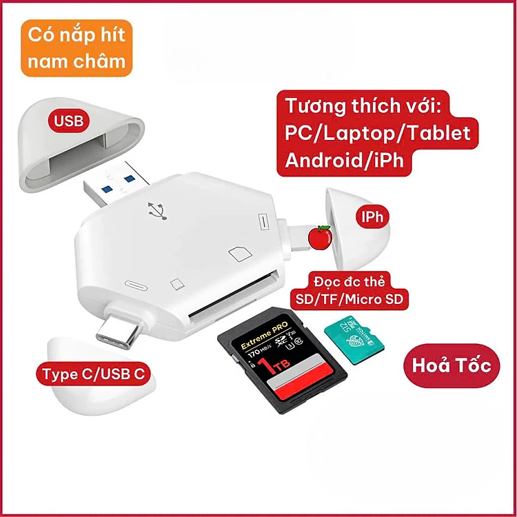 Đầu đọc thẻ nhớ SD, TF ( Micro SD ) đa năng 3in1 dùng cho iPhone, iPad, điện thoại Android, máy tính, PC, laptop - Hàng Chính Hãng