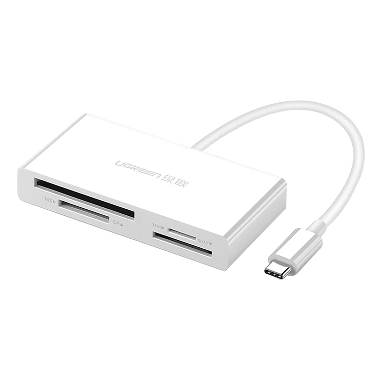 - Đầu Đọc Thẻ Nhớ Ugreen USB Type-C 40444 giúp bạn đọc được hầu hết các loại thẻ nhớ điện thoại, máy ảnh trên thị trường: Compact Flash (CF), TF, SD, MS sử dụng cho new Macbook, Macbook Pro, Dell XPS, điện thoại có cổng OTG Type C.