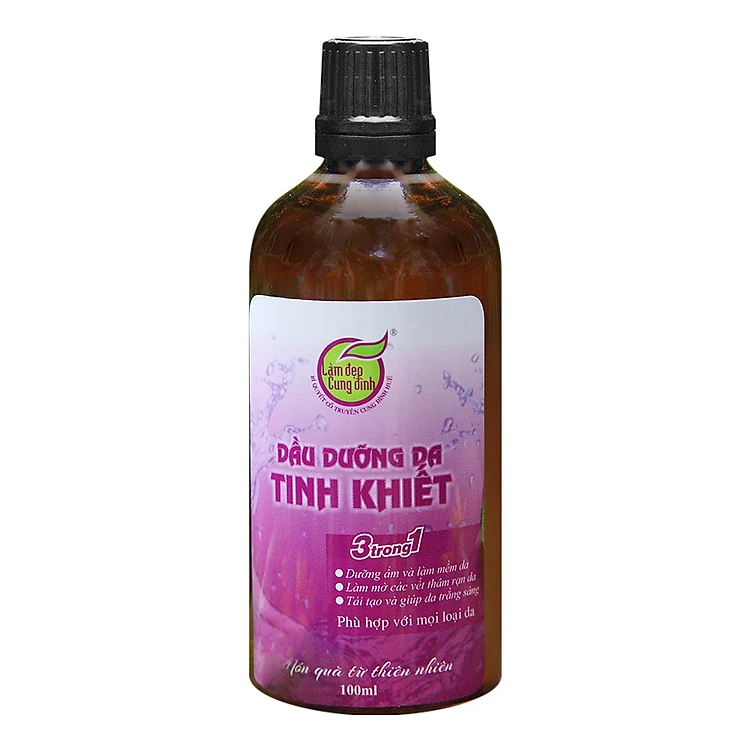 - Dầu Dưỡng Da Tinh Khiết Cung Đình (100ml) làm từ 100% tự nhiên với Bí Quyết từ cung đình Huế có khả năng thẩm thấu sâu vào tế bào da, giúp giữ vững cấu trúc collagen, phục hồi tổn thương, liền sẹo và làm da săn chắc.