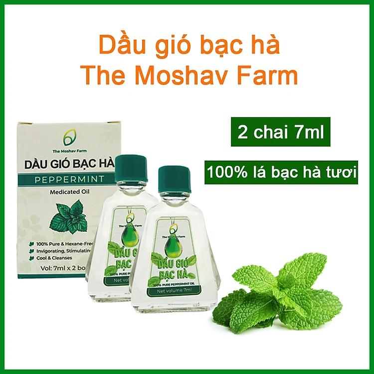 Dầu Gió Bạc Hà The Moshav Farm - Chiết Xuất Từ 100% Lá Bạc Hà Tươi Giảm Đau Đầu, Chống Say Tàu Xe , Sảng Khoái Tinh Thần, Tập Trung Cao Độ - Hộp 2 Chai 7ml