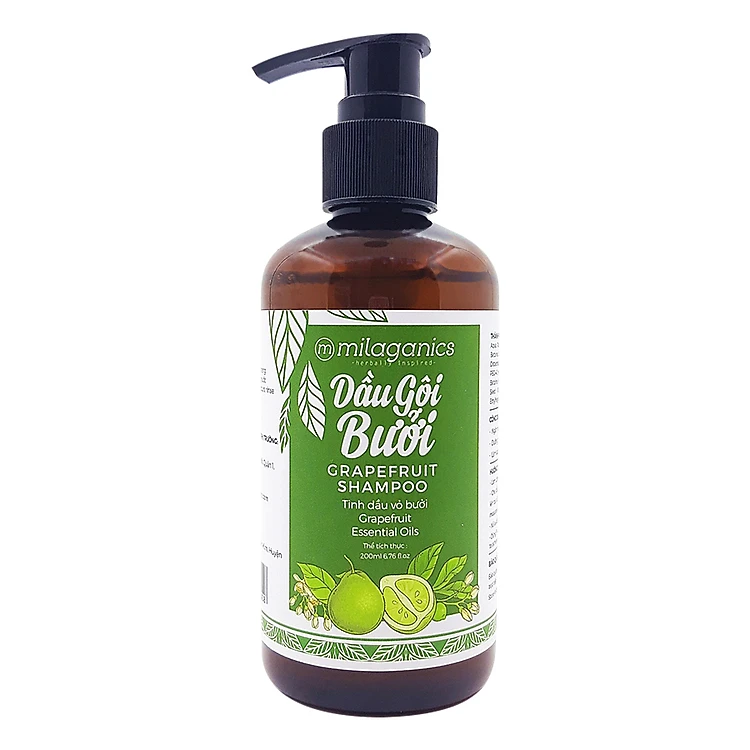 - Dầu Gội Bưởi - Ngăn Ngừa Rụng Tóc, Kích Thích Mọc Tóc Milaganics (200ml / Chai) ngăn ngừa rụng tóc, kích thích mọc tóc với tinh dầu vỏ bưởi.