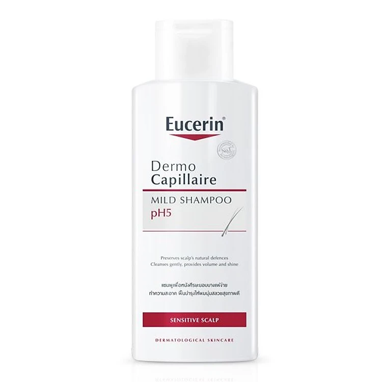 Eucerin DermoCapillaire pH5 MILD SHAMPOO không chứa chất tạo màu, paraben, silicone và xà phòng có tính kiềm mạnh, thích hợp cho người muốn tránh sử dụng dầu gội chứa các chất độc hại này. Eucerin DermoCapillaire pH5 MILD SHAMPOO nhẹ nhàng làm sạch, đồng thời bảo vệ da đầu nhạy cảm. Eucerin DermoCapillaire pH5 MILD SHAMPOO với công thức dịu nhẹ thích hợp dùng hàng ngày.