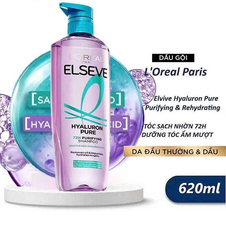 Dầu Gội Da Đầu Thường, Dầu L'Oréal Elseve Hyaluron Pure 72h Purifying Shampoo 400ml/620ml