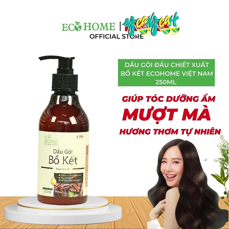 Dầu Gội Đầu Chiết Xuất Bồ Kết Công Nghệ Sinh Học ECOHOME 250ml Giúp Tóc Dưỡng Ẩm Mượt Mà Hương Thơm Lâu