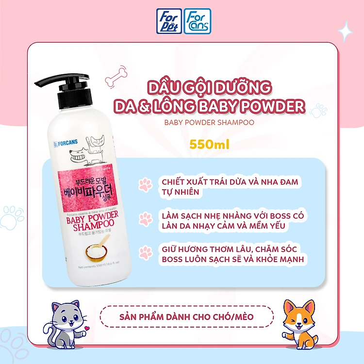Dầu Gội Dưỡng Da Và Lông Baby Powder Cho Thú Cưng Forcans 550ml