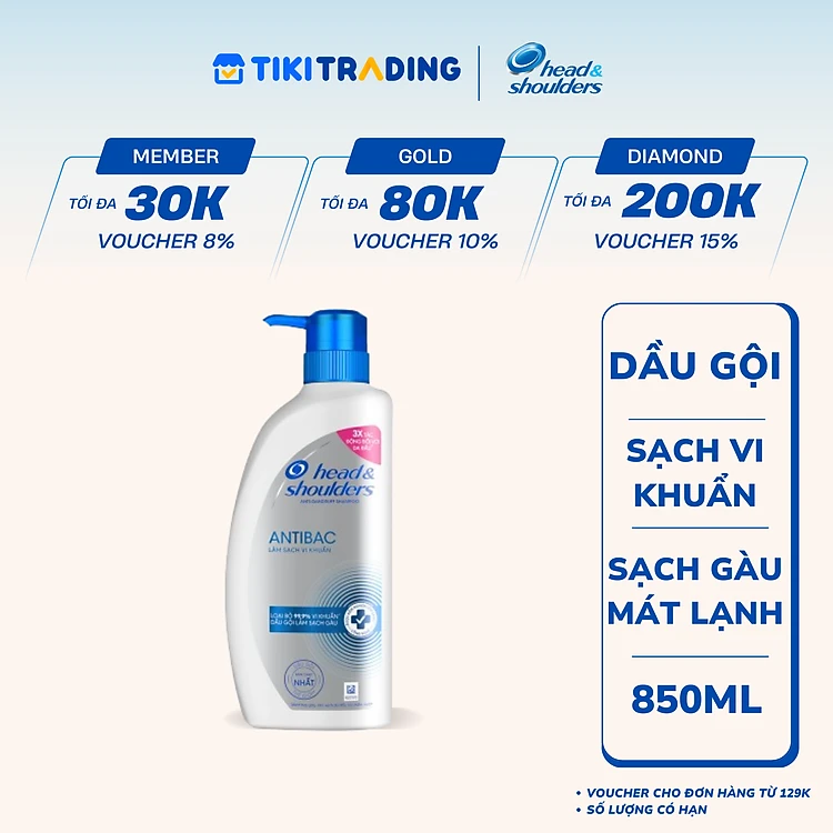 Dầu Gội HEAD & SHOULDERS Antibac Làm Sạch Vi Khuẩn Chai 850ML