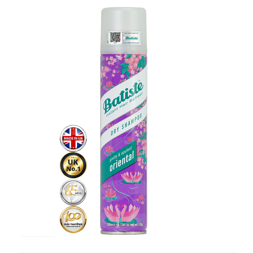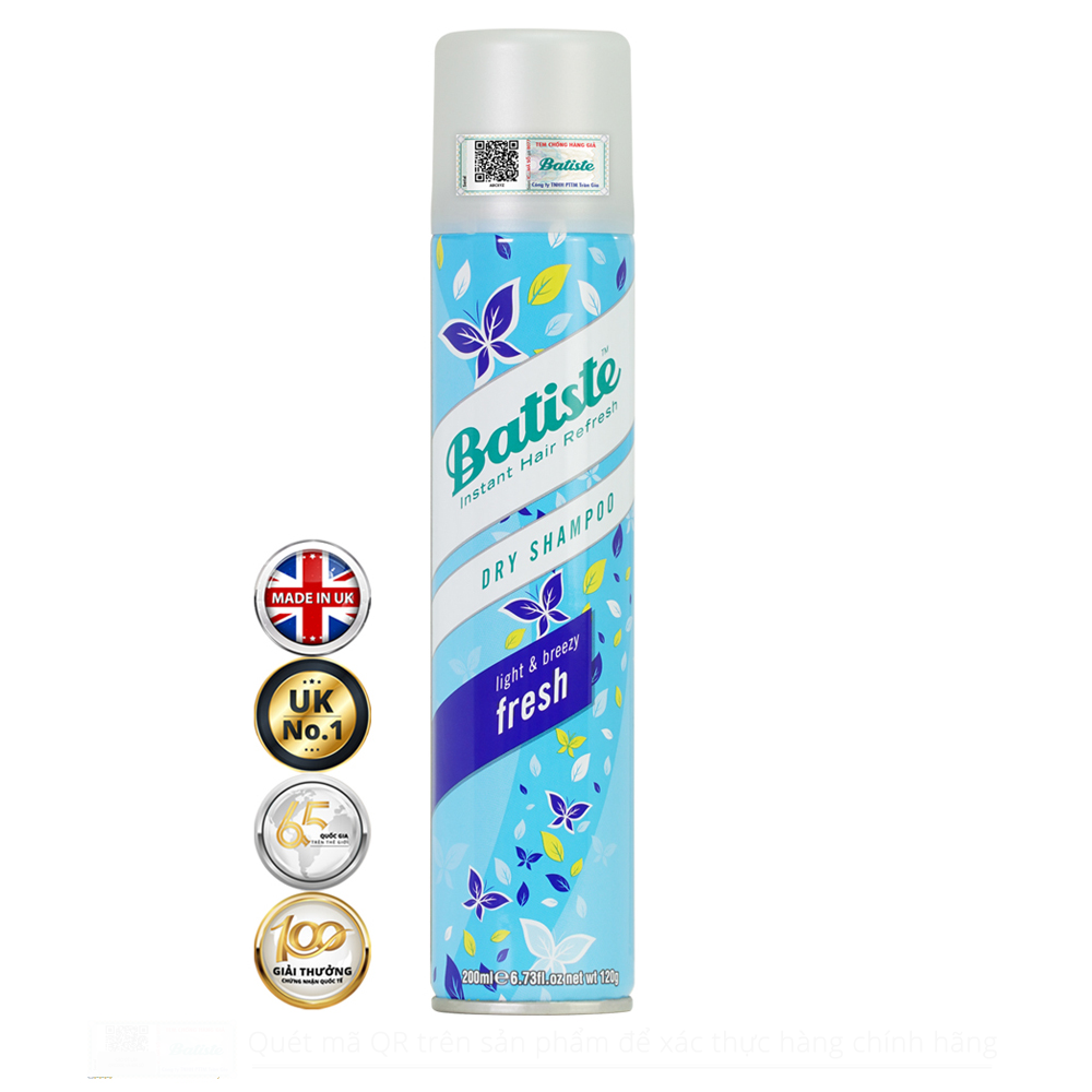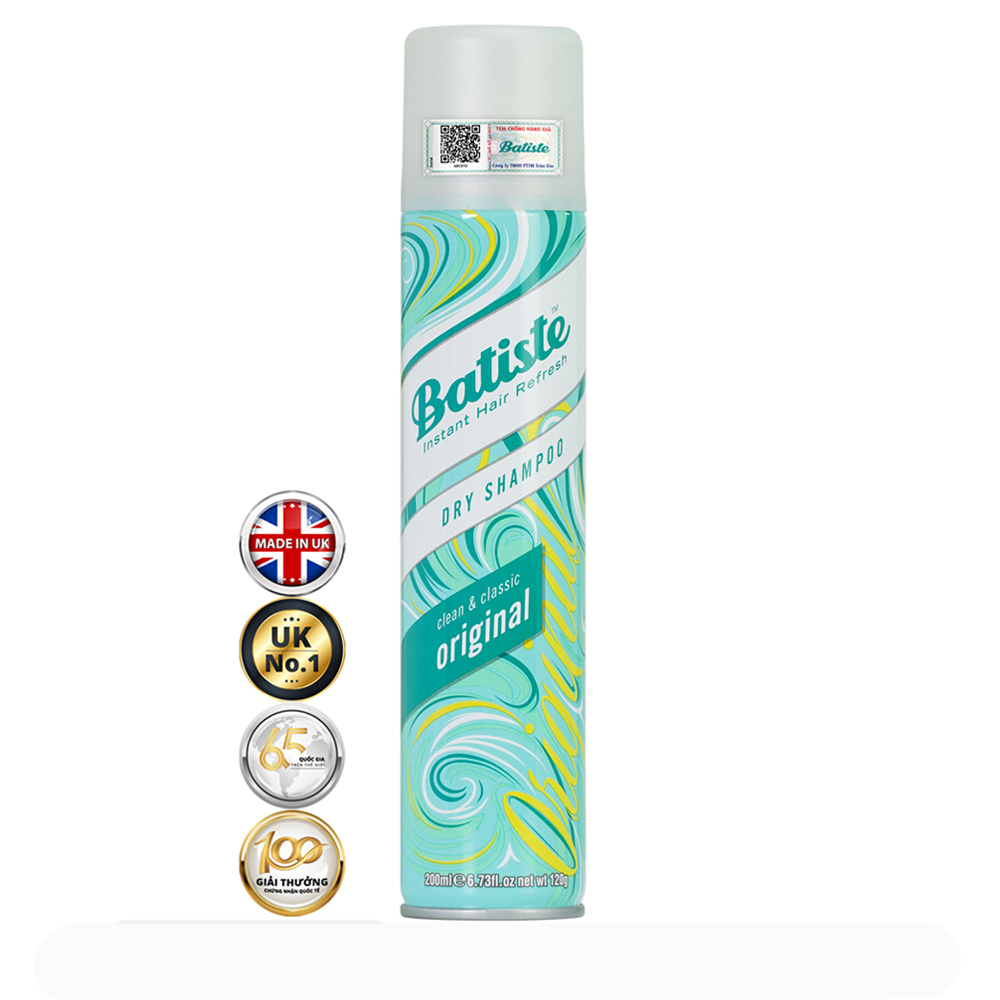 Batiste Dry Shampoo 200ml thấm hút và hấp thụ dầu thừa trên da và tóc làm giảm bết dính, trả lại cho bạn mái tóc tơi mịn cùng đa dạng mùi hương vô cùng dễ chịu