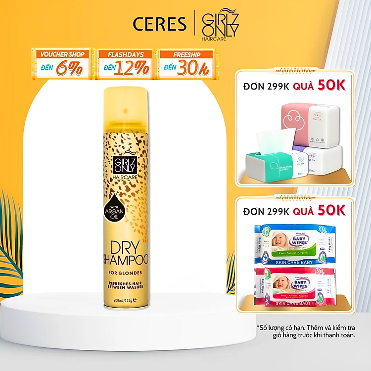 - Dầu Gội Khô Girlz Only Xịt Tóc Gội Đầu Khô Dry Shampoo Vàng dành cho mái tóc mỏng xẹp và da đầu dầu, có khả năng hấp thụ bã nhờn dư thừa, điều tiết tình trạng tiết dầu quá mức, đồng thời nhanh chóng làm sạch mái tóc của bạn chỉ sau 1 lần xịt, giúp tiết kiệm thời gian, tiện lợi cho những cô nàng bận rộn.