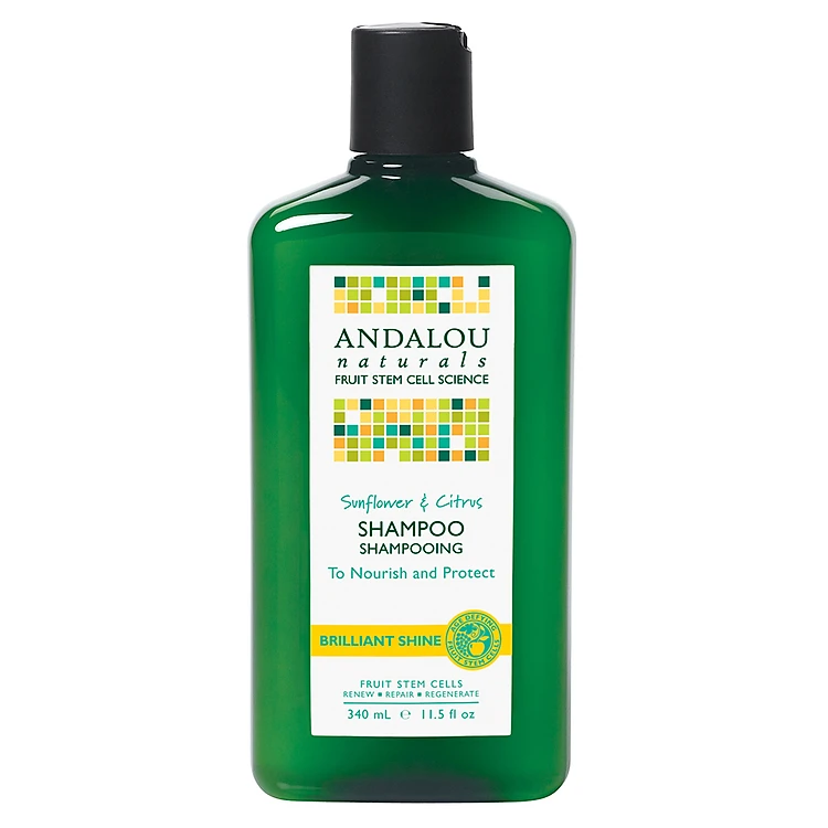 Dầu Gội Làm Bóng Tóc Andalou Naturals Sunflower & Citrus Brilliant Shine - 27101 (340ml) áp dụng công nghệ tế bào gốc trái cây tiên tiến giúp nuôi dưỡng và phục hồi sức sống cho tóc. Sản phẩm là tổng hợp các dưỡng chất tinh túy từ dầu hướng dương và dầu quýt giúp mang đến cho bạn một mái tóc khỏe mạnh và óng mượt từ gốc đến ngọn.
