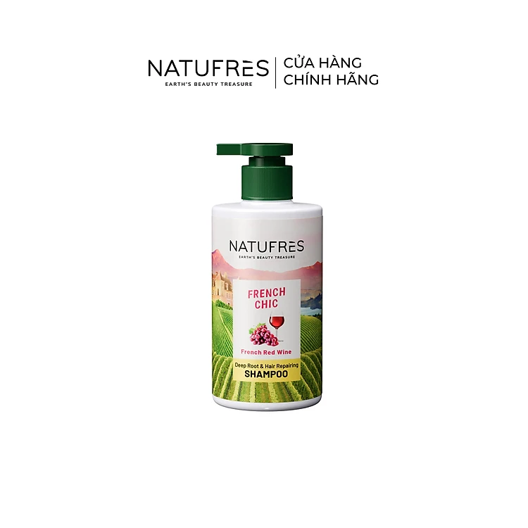 Dầu Gội Phục Hồi Tóc Hư Tổn, Ngăn Gãy Rụng NATUFRÈS French Chic Chiết Xuất Rượu Vang Đỏ Pháp - 250ml / 450ml