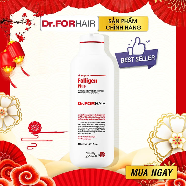 Dầu gội Folligen giúp chăm sóc da đầu và ngăn ngừa rụng tóc không có chất tẩy rửa hay paraben, silicon, không dầu khoáng, không màu nhân tạo