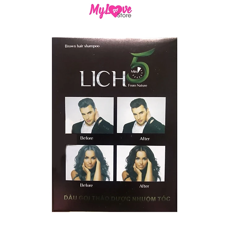Dầu Gội Phủ Bạc Tóc Lich5 Thảo Dược Đen Tóc Chỉ Trong 5 Phút, An Toàn, Không Hóa Chất, Giữ Màu 3 - 4 Tuần, Hộp 10 gói mylovestore