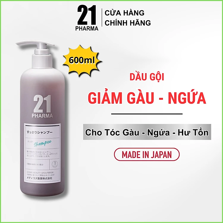 Dầu gội sạch gàu Pharma 21 Nhật Bản Dầu gội đầu chống gàu, sạch gàu & hết ngứa da đầu - Chai 600ml