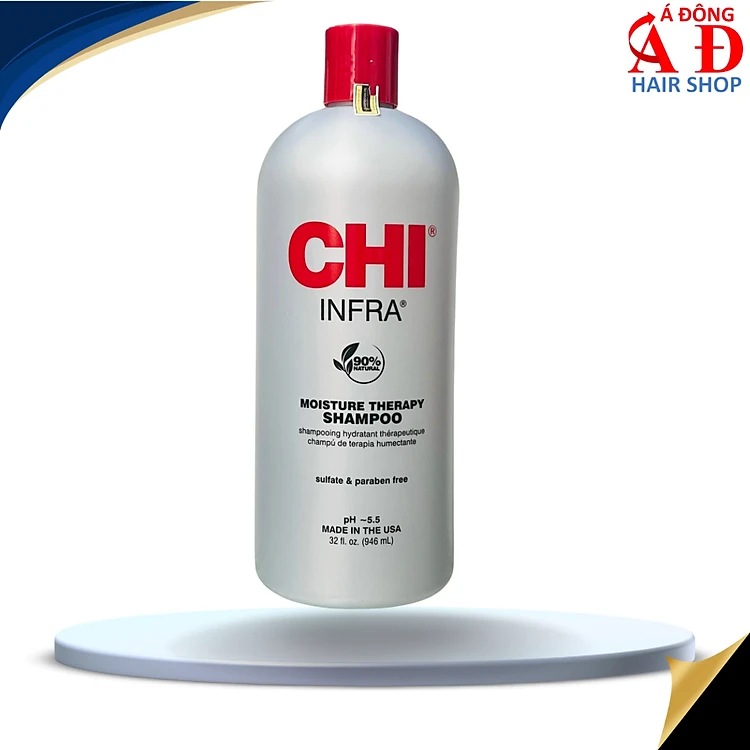 [+Tặng mũ trùm] Dầu gội CHI Infra Moisture Therapy shampoo siêu mượt cho tóc khô hư tổn (xám) Mỹ 946ml (Mẫu mới)