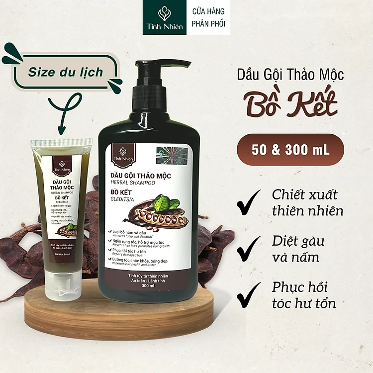 Dầu Gội Thảo Mộc Bồ Kết Tinh Nhiên khắc phục nấm và gàu, dưỡng tóc khỏe mạnh
