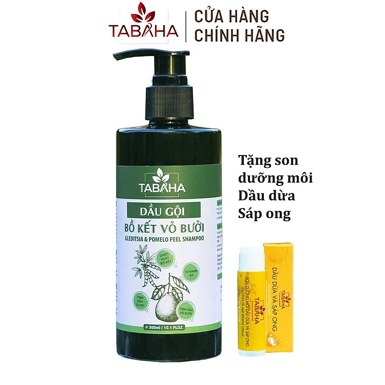 Dầu Gội Thiên Nhiên Bồ Kết Vỏ Bưởi Tabaha 300ml Giảm Rụng Tóc Tặng Son Dưỡng Môi