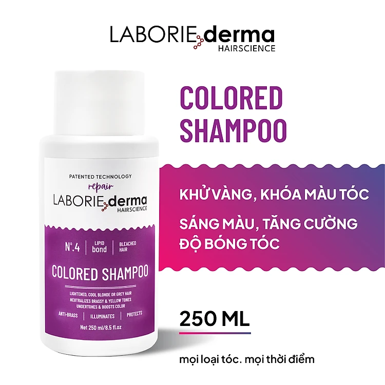 Dầu gội tím giúp làm sáng và đều màu tóc LABORIE derma Colored Shampoo - 250ml
