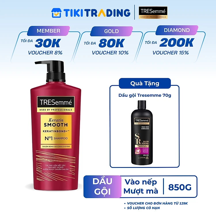 Dầu Gội TRESemmé Keratin Smooth Cho Tóc Vào Nếp 850g