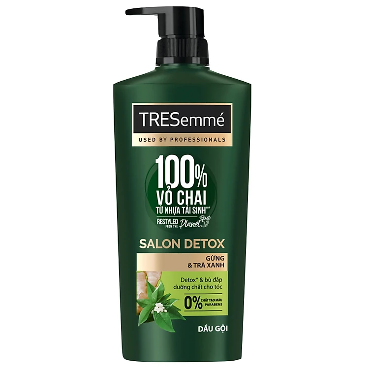 Dầu gội TRESemmé Salon Detox dành cho tóc hư tổn, với công thức từ thiên nhiên gồm gừng và trà xanh, giúp Detox và bù đắp dưỡng chất cần thiết, cho mái tóc bạn chắc khỏe chuẩn SALON mỗi ngày, ngay tại nhà. Đặc biệt, sản phẩm còn thích hợp với cả tóc nhuộm với công thức cực kỳ dịu nhẹ không chứa Parabens và Chất tạo màu.