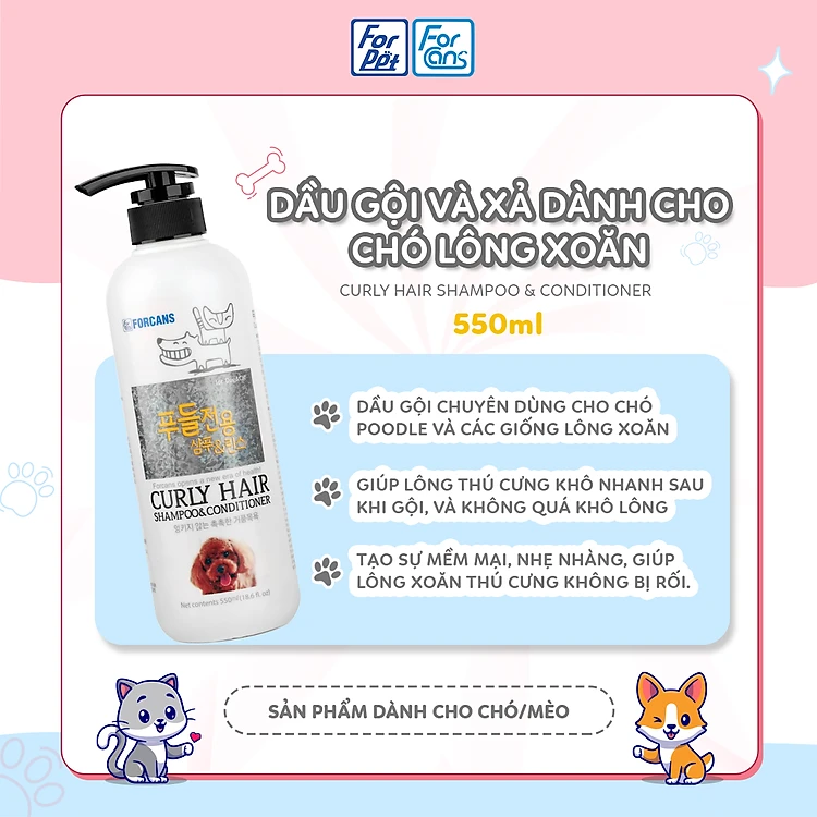 Dầu Gội Và Xả Dành Cho Chó Lông Xoăn Forcans 550ml