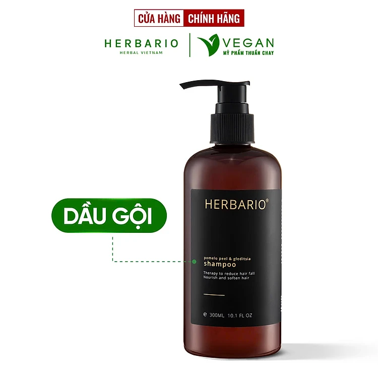 Dầu gội vỏ bưởi & bồ kết Herbario thảo dược 300ml phục hồi tóc, giảm gãy rụng giúp khôi phục lại mái tóc chắc khỏe đẹp thuần chay