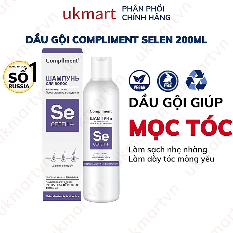Dầu Gội Xả Compliment Selen Sạch Sâu Giảm Rụng, Làm Mọc Tóc 200ml