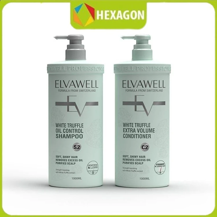 Dầu gội xả giảm rụng tóc sạch dầu bết Elvawell - 1000ml (Màu xanh)