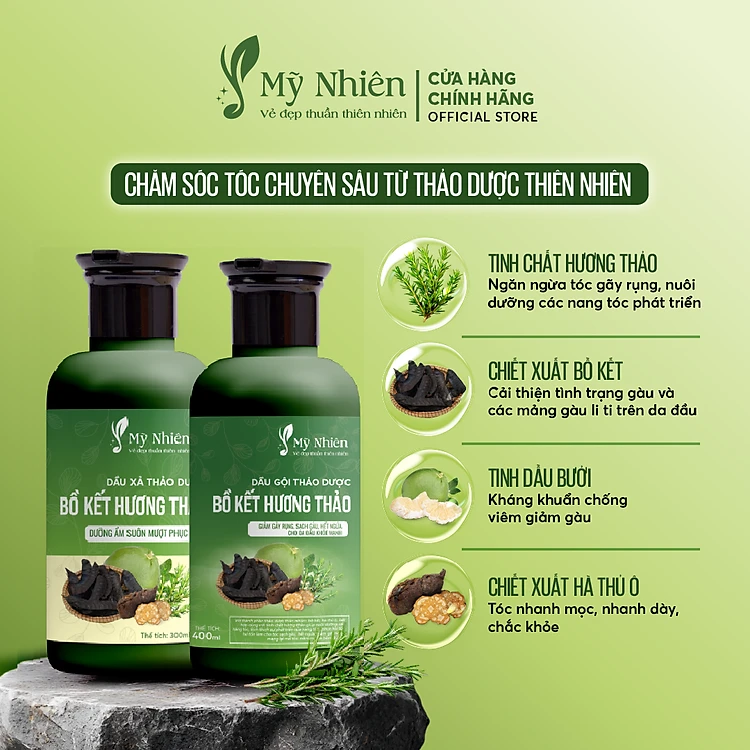 Dầu Gội, Xả Thảo Dược Mỹ Nhiên 400ml/300ml Dưỡng Tóc Tinh Chất Bồ Kết Hương Thảo - Làm Sạch Da Đầu, Nuôi Dưỡng Tóc Mềm Mượt, Giúp Tóc Khỏe Tự Nhiên